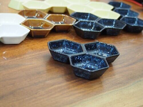 釉薬に結晶を混ぜて焼く製法ですので、商品1つ1つ発色の仕方が異なります。
